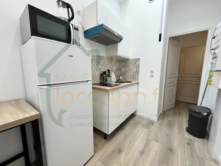 Appartement de 15 m2 parfaitement optimisé et très bien équipé comprenant une pièce de vie avec cuisine ouverte et équipée (frigo, plaques, micro-onde…) de 8 m2, un bureau servant de chambre ainsi qu’une salle de douche.