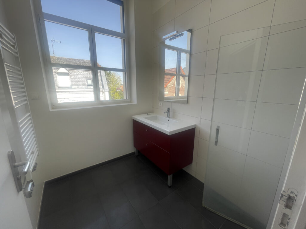 Deux chambres, buanderie, deux salle d’eau dont un avec WC indépendant et un beau séjour-cuisine à l’étage. Disponible de suite.