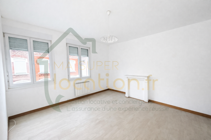 Appartement de deux pièces situé à Albert (80300) comprenant une pièce de vie ouvert sur une cuisine aménagée, une chambre, une salle d’eau avec douche et WC.