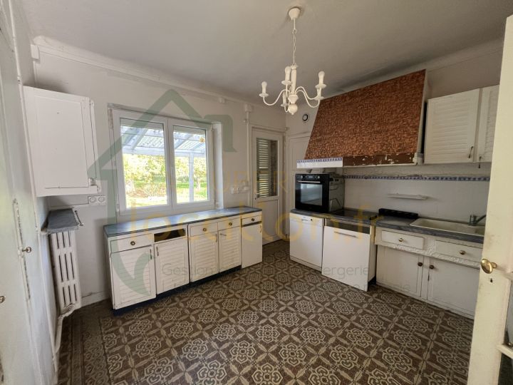 Joli maison comprenant un grand salon/séjour, une cuisine avec arrière cuisine/sous-sol qui donne directement sur le grand jardin avec dépendances et sur le garage.