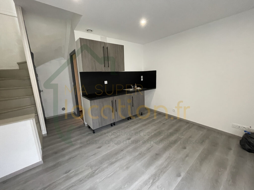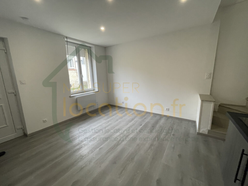 Maison en duplex comprenant une cuisine ouverte sur salon/ séjour, une salle d’eau avec WC, avec à l’étage, une chambre. Le loyer : 460€ Dépôt de garantie : 460€ Honoraires : 407€ dont 111€ pour la réalisation de l’état des lieux.