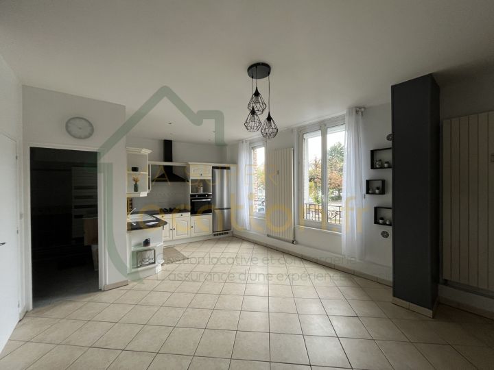 Vous y trouverez un grand salon-séjour lumineux ouvert sur une cuisine équipée avec four, plaque, hotte, réfrigérateur-congélateur et lave-vaisselle.