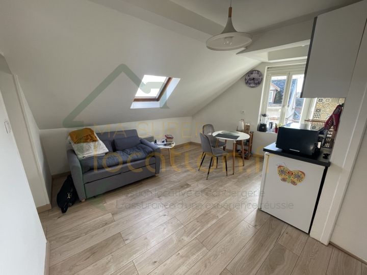 Proche centre ville , Joli T2 en RDC comprenant : pièce de vie, cuisine équipée, sde avec wc et une chambre.