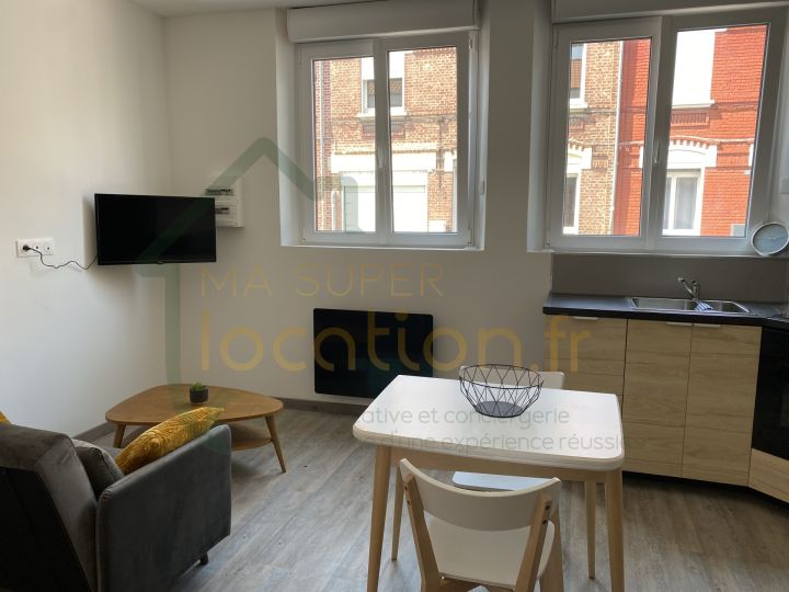 Appartement deux pièces comprenant une pièce de vie, une cuisine aménagée, une chambre, sde et wc.