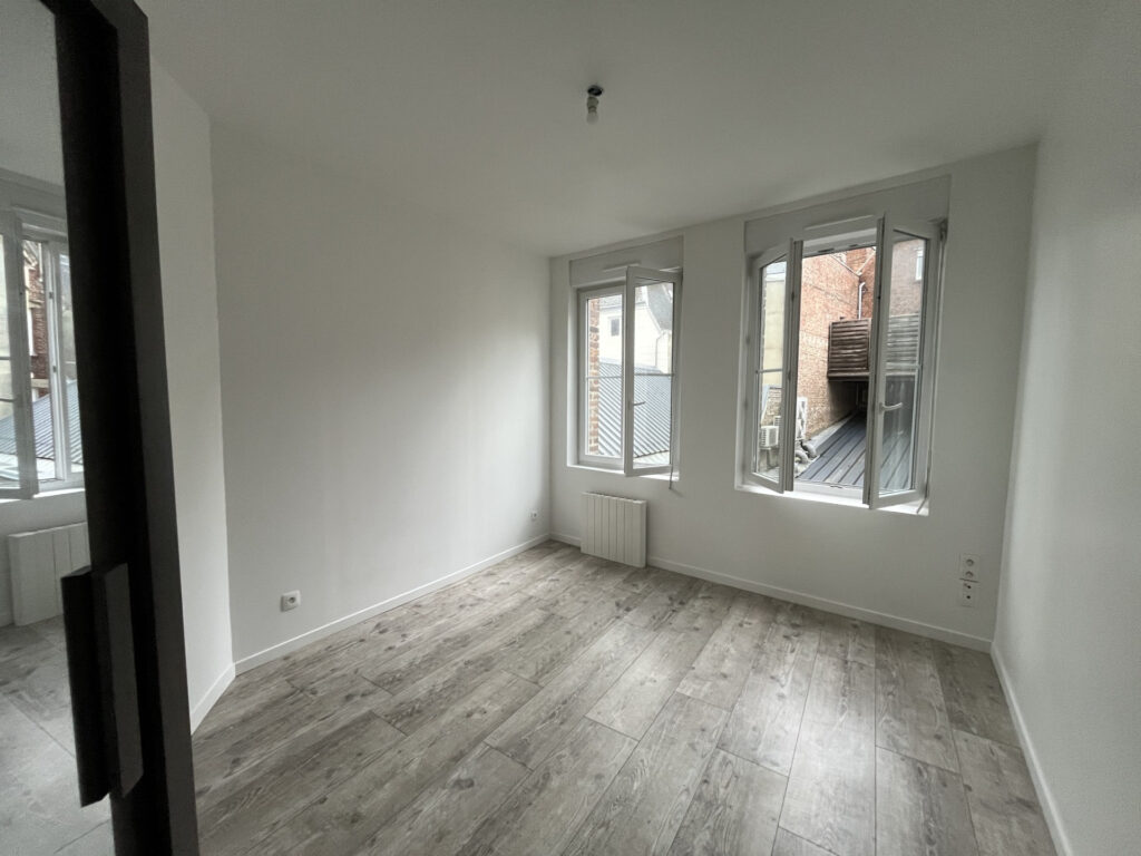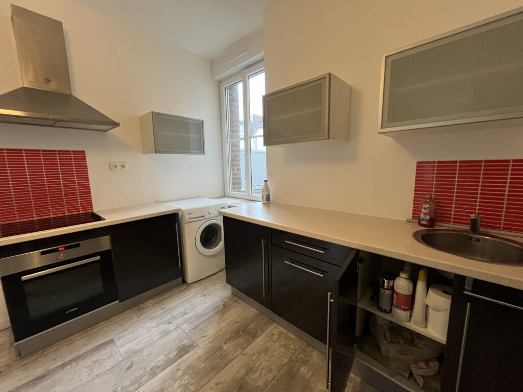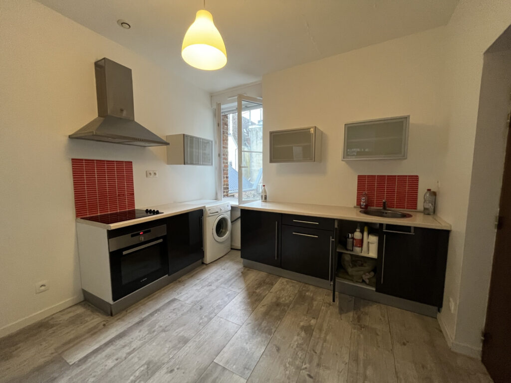 En hyper centre, A l’étage d’ un immeuble très calme, appartement complètement rénové comprenant : pièce de vie avec cuisine équipée (four plaque hotte, frigo). une chambre, salle d’eau avec wc.