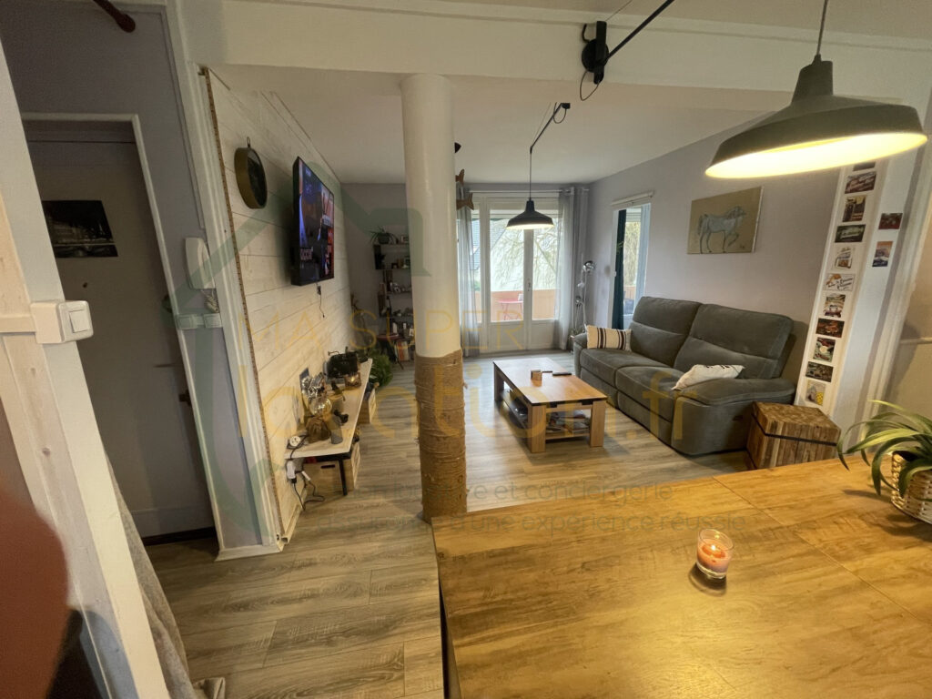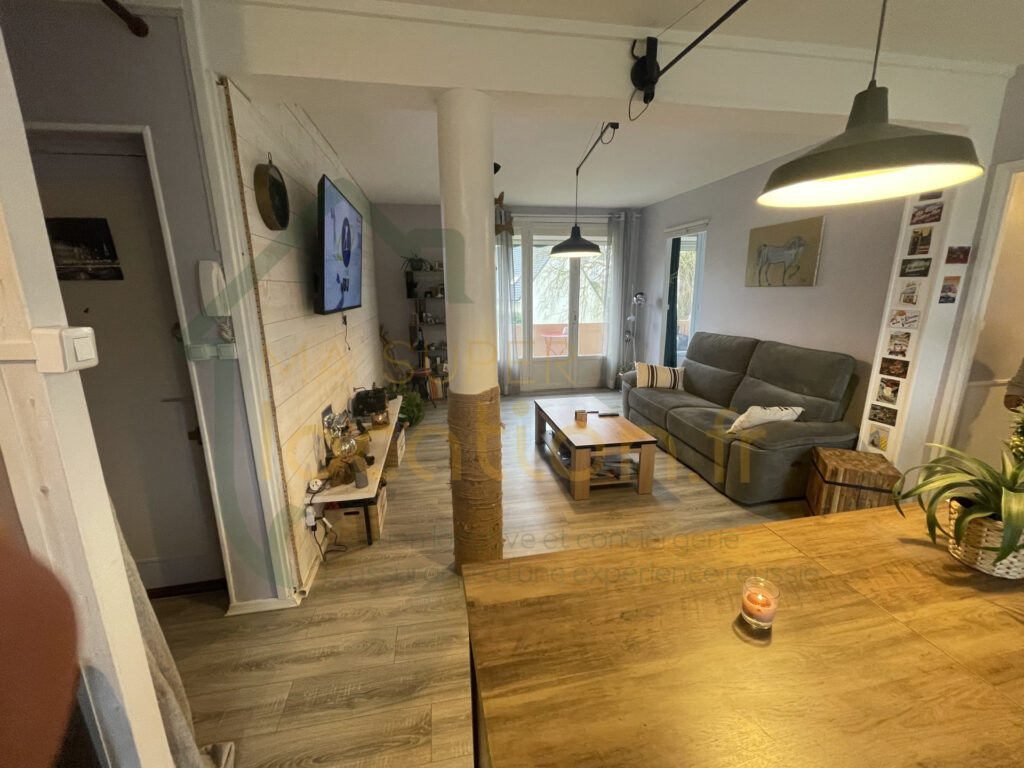 Appartement de trois pièces, dont deux chambres lumineuses et une pièce à vivre d’environ 20 m2 (cuisine équipée ouverte sur séjour).Un balcon sans vis à vis et une cave. Aménagé et décoré avec goût pour une ambiance cosy et chaleureuse.